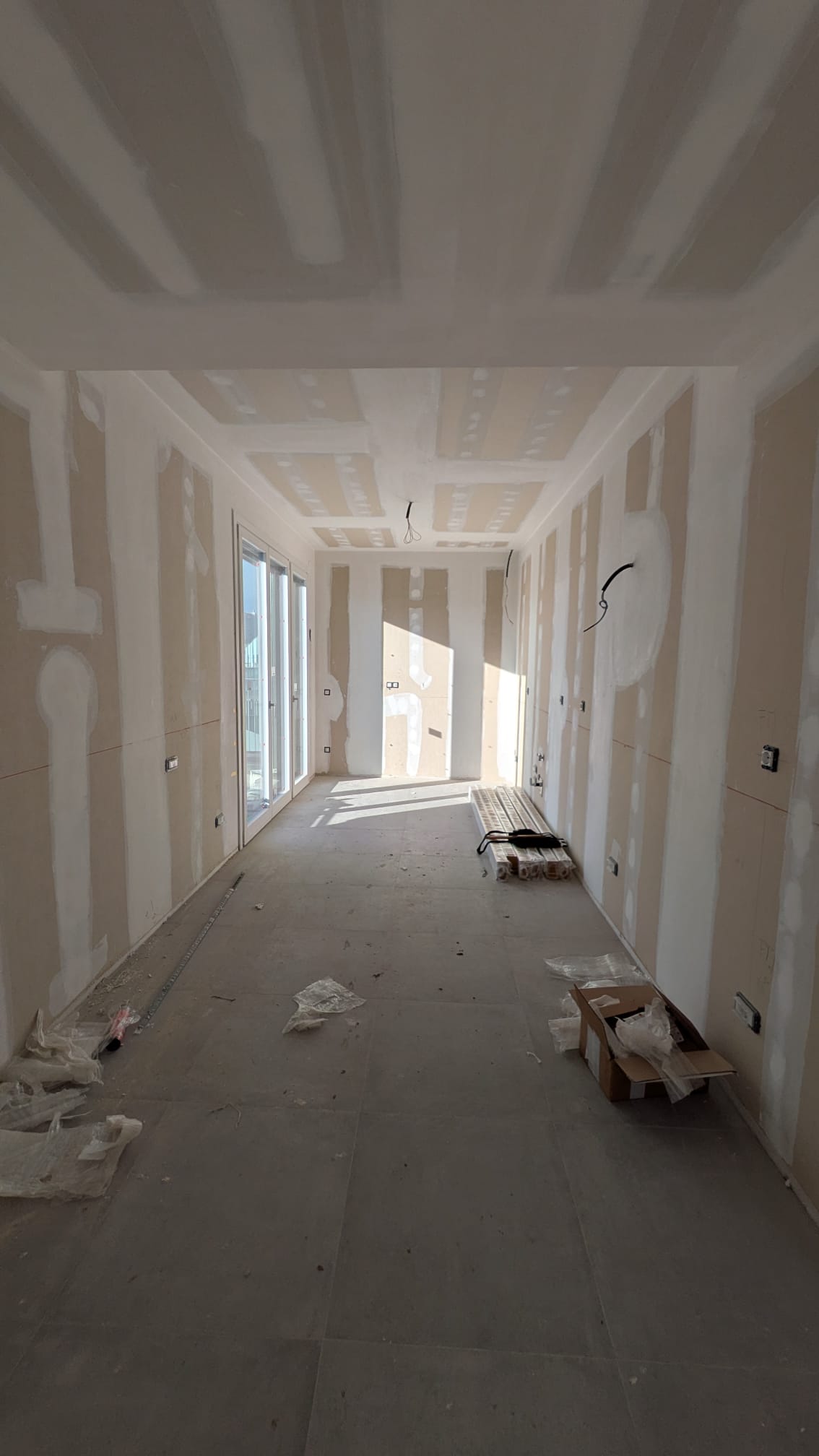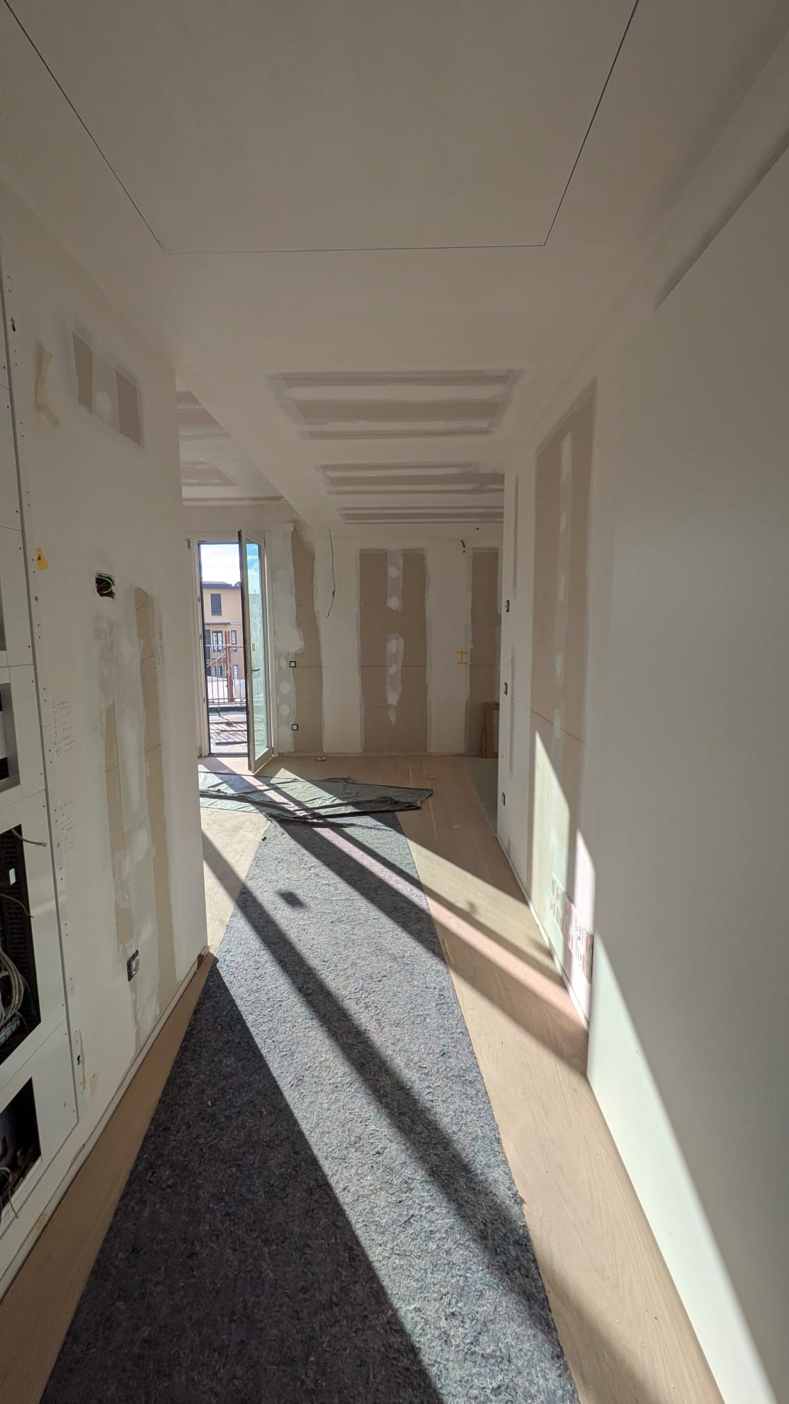 Il lungo corridoio, una volta semplice passaggio, è diventato un vero e proprio elemento scenografico: pavimenti in marmo, pareti chiare e tagli di luce guidano lo sguardo e ampliano la percezione dello spazio.